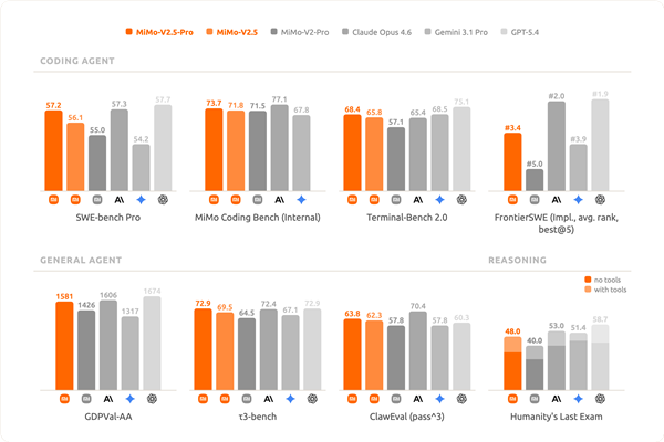 此外,相较上一代MiMo-V2-Pro实现全方位跃升。MiMo-V2.5则从打原生全模态Agent能力。涵盖图像、音频取视频,